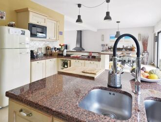 Elle se compose d'une réception d'environ 80 M2 baignée de lumière et donnant accès sur la terrasse, une superbe cuisine équipée ouverte sur la réception, 5 grandes chambres, 3 salles d'eau, une salle de bains, lingerie, salle de jeux et un garage.
